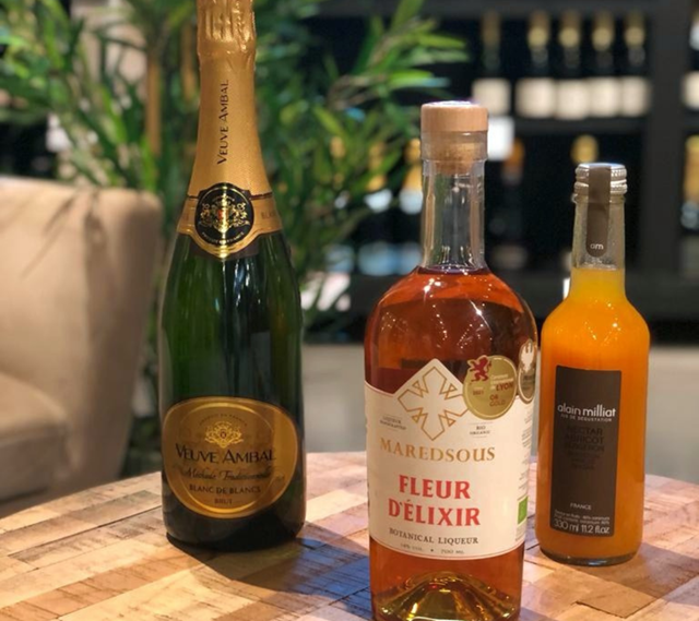 Il combine les fines bulles du Veuve Ambal, la vivacité du nectar d'abricot Alain Milliat, et la gourmandise de la Fleur d'Elixir, liqueur de Maredsous - il séduira à coup sûr votre bien-aimé.